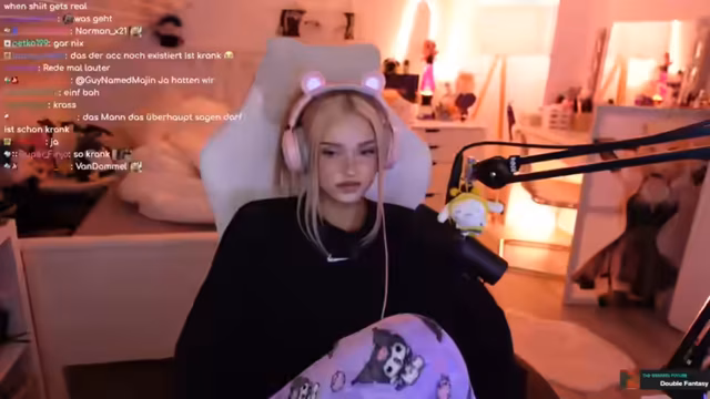 00:58:13Ein zentraler Punkt des Streams ist die Aufarbeitung eines dramatischen Konflikts zwischen den Creatorinnen Mauki und Anni the Duck. Es geht um Vorwürfe von Mobbing und einem angeblichen Stuhlwurf. Die Streamerin präsentiert einen Chatverlauf, der zeigt, dass Mauki nach einer Zurückweisung durch eine Person namens Mr. X eine Hassparade startete und extreme, gewalttätige Sprache benutzte. Die Aussagen von Anni the Duck und die Wahrheit über den Vorfall werden als Manipulation dargestellt.