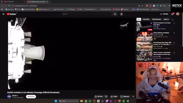05:24:00Der Streamer kommentiert die Livebilder der Mission und stellt Fragen zur Qualität der Übertragung. Er ist der Meinung, dass die Bilder von innen der Raumkapsel echt sind, da Schwerelosigkeit nur schwer zu faken ist, während die Außenaufnahmen durch die extreme Sonneneinstrahlung und Strahlung schlechter sind. Es werden Kameras wie die Canon 1DX für die Aufnahmen vermutet und die Entfernung zur Erde und zum Mond diskutiert.