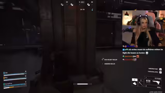 02:32:09Nach einem kurzen Abstecher auf den Europa-Server wird zurück zum Amerika-Server gewechselt. Die Priorität liegt nun auf der Konzentration auf Loot und dem Aufbau des Inventars während der Sonnächtlichen Plünderung. Es kommt zu einem intensiven Feuergefecht, bei dem die Gegner starken Schusswaffen wie einer Shotgun verwenden, während die Streamer nur eine Rattler zur Verfügung hat und gezwungen ist, sich mit improvisierten Taktiken zurückzuziehen.