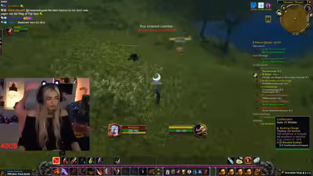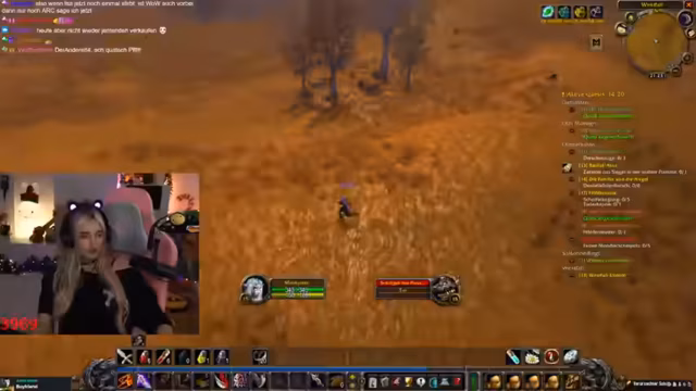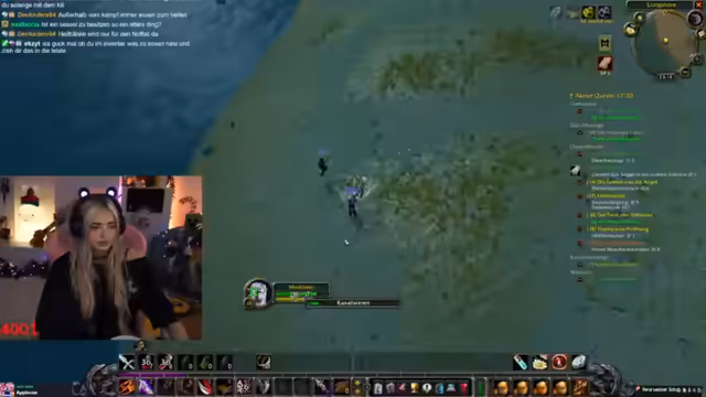 03:56:54Nach fast vier Stunden Arc Raiders wird das Spiel gewechselt zu World of Warcraft, um den WoW-Grind fortzusetzen. Es wird nach den anderen Mitgliedern der Community gesucht, die ebenfalls in einem Discord-Channel sind, um gemeinsam weiterzuspielen. Der Streamer beschreibt die aktuelle Situation in WoW als etwas chaotisch und erwähnt, dass Teammitglieder gestorben sind, was zu einer kurzen Pause führte.