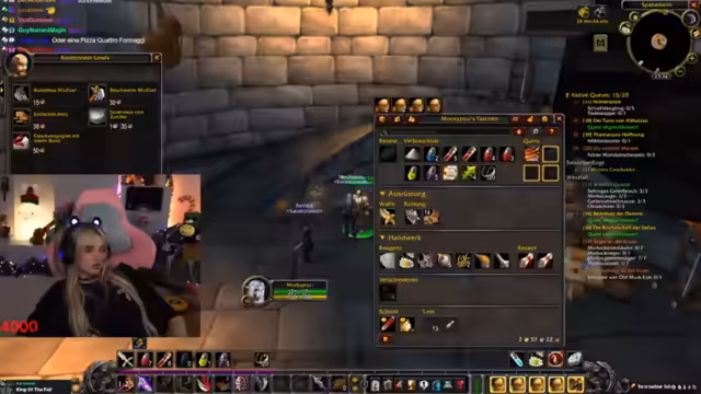 04:46:28Die Suche nach einem sicheren Grindspot wird zur Herausforderung, da der Streamer auf unvorhergesehene und starke Gegner stößt. Mit Hilfe des Chats identifiziert er eine Questreihe, die Banditen und Murlocs als Ziele hat. Es wird die Taktik erklärt, Gegner wie den Bote der Defians zuerst zu isolieren und zu bekämpfen, um Chaos zu vermeiden. Der Streamer kämpft darum, Loot wie 'Möller-Augen' zu farmen, wobei die Kommunikation mit anderen Spielern, die ebenfalls die Questen machen, schwierig ist.