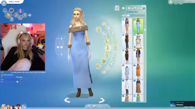 02:43:42Der Streamer konzentriert sich intensiv auf das Design eines Sims-Charakters, insbesondere die Erschaffung einer 'bösen' Schwester für eine Familiengeschichte. Er wählt spezifische Persönlichkeitseigenschaften wie 'Makaber' und 'neugierig' und experimentiert mit dem Aussehen, inklusive Augenfarbe, Augenbrauen und Make-up, um eine bestimmte Stimmung zu erzeugen. Diskutiert wird, welche Outfits und Accessoires für eine aristokratische, aber mysteriöse Figur angemessen sind, wobei Kleidung im Stil von Bridgerton im Vordergrund steht. Das Ziel ist es, eine visuell ansprechende und charakterlich passende Figur zu erstellen, die in die geplante Geschichte passt.