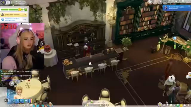 06:58:59Der Maskenball beginnt, verläuft jedoch äußerst chaotisch. Nur wenige, vor allem familienfremde Gäste wie die Dynastien 'Thorn' und 'Monty' erscheinen. Die Musik ist laut, was die Stimmung nicht verbessert. Die Sims interagieren kaum miteinander, und es kommt zu Unstimmigkeiten. Der Streamer erkennt schnell, dass für einen erfolgreichen Ball Organisation und Personal notwendig sind. Ein Butler, ein Mixertisch für Getränke und Catering werden als essentiell erkannt. Nach anfänglichen Schwierigkeiten, das richtige Personal zu finden, wird ein Butler engagiert, der jedoch nicht alle Aufgaben zuverlässig erfüllt. Das Fehlen von Catering und unorganisierte Getränkeabgabe machen die Party zu einem 'Disaster'. Die Sims flirten und tanzen nur sporadisch, was den Ablauf stört.
