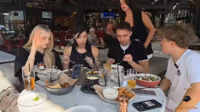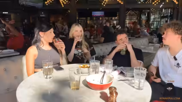 03:43:21Die Gruppe entdeckt einen Pickleball-Platz und ist begeistert, da dies das erste grüne Gras ist, das sie in Texas sehen. Es wird der Wunsch geäußert, im Pool zu schwimmen. Die Diskussion dreht sich um Essensmöglichkeiten, da Ronny hungrig ist. Es wird vorgeschlagen, später Jetski zu fahren, aber es gibt Bedenken, ob alle Jetskis funktionieren. Die Gruppe überlegt, ob sie in Austin essen gehen oder die Stadt erkunden sollen. Es wird über die Bedeutung von Wörtern wie „Pee-Break“ und „Ome“ gesprochen, wobei kulturelle Unterschiede in der Aussprache und Bedeutung hervorgehoben werden. Die Essensplanung wird kompliziert, da Ronny Vegetarier ist und bestimmte Küchen nicht mag, wie mexikanisches Essen oder zu fettige Speisen. Es werden verschiedene Optionen wie Pizza, koreanisches Barbecue und ein Restaurant namens Flourchild in Betracht gezogen.