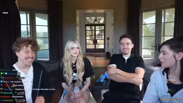 01:24:45Bei der Ankunft wird die Kommunikationsstrategie für den Stream besprochen, da Arthurs Community hauptsächlich Englisch spricht und Julia, eine der Anwesenden, nur Englisch spricht. Es wird entschieden, hauptsächlich Englisch zu sprechen, aber auch deutsche Einwürfe zu erlauben. Die Streamer stellen sich gegenseitig mit kurzen Twitch-Clips vor. Arthur zeigt einen Clip von sich selbst vor einem Jahr, in dem er Secret Hitler spielt und fast alle davon überzeugt, nicht Hitler zu sein. Julia präsentiert einen Clip, in dem sie in einem Wrestling-Match einen MMA-Kämpfer besiegt. Honeypuu zeigt einen Clip, in dem sie in einem Papiermüllcontainer in Berlin schläft und von einer Person geweckt wird, die den Müll entsorgen möchte.