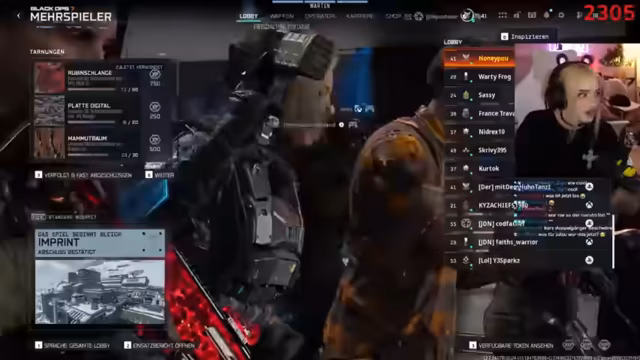 04:14:39Während des Spiels in Call of Duty werden verschiedene Skins und Tarnungen thematisiert. Es wird erwähnt, dass bestimmte Tarnungen freigeschaltet wurden, möglicherweise durch das Erreichen von 'Voltetischen'. Die Streamerin äußert den Wunsch, die Skins besser zu präsentieren und bedankt sich bei den Zuschauern für ihre Treue. Zudem wird ein Wecker erwähnt, der auf 8 Uhr Black Ops eingestellt ist, was auf eine tiefe Immersion in das Spiel hindeutet. Im weiteren Verlauf des Spiels werden die Begriffe 'Packet First' und '7-11 Spawnwerk' in den Raum geworfen, was auf technische Aspekte oder spezifische Spielmechaniken hindeuten könnte, die die Streamerin zu verstehen versucht.