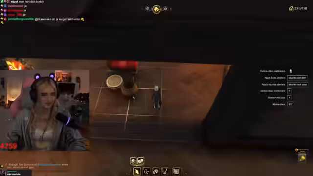 01:35:20Der Stream beschäftigt sich intensiv mit dem Bau und der Einrichtung eines Hauses in World of Warcraft. Es werden verschiedene Elemente wie Waffenständer, Deko-Objekte, Fässer, Lichter und Möbel für Wohnzimmer, Essbereich und Schlafzimmer besprochen und platziert. Besondere Aufmerksamkeit gilt der Suche nach schwarzen Farbstoffen und der Gestaltung des Eingangsbereichs, der sowohl unscheinbar als auch geheimnisvoll sein soll, um eine 'Versteckte Ecke' zu schaffen. Die Herausforderungen des Editors und die Unzufriedenheit mit einigen vorgegebenen Elementen wie blau leuchtenden Fenstern werden thematisiert.