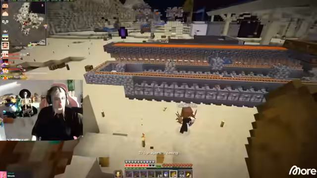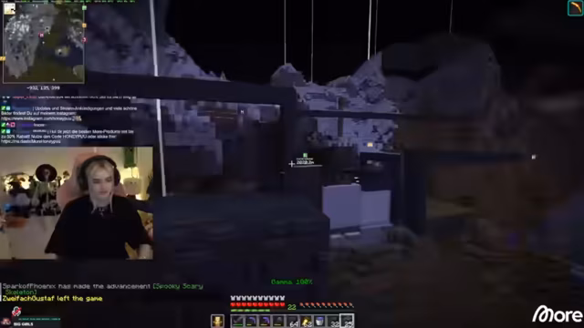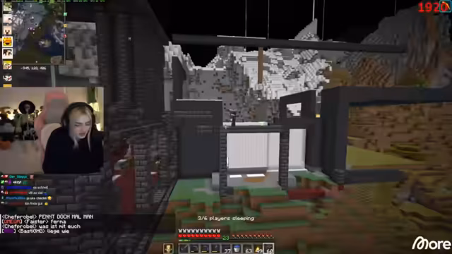 05:59:59Die Diskussion über Musik geht weiter, wobei Mohnblumen und Mohnschnecken als Assoziationen zu Mohn erwähnt werden, was humorvoll mit Drogenkonsum in Verbindung gebracht wird. Es wird über die 'beste Minecraft-Blume' diskutiert, wobei die 'Torchflower' als Favorit genannt wird, die man vom 'Schnüffler' erhält. Die Spieler befinden sich in einem Kampf mit Skeletten und diskutieren gleichzeitig über die Anzahl der anwesenden Personen. Ein Spieler präsentiert sein Bauprojekt, ein 'Auge', das mit Shadern noch verbessert werden soll und später einen Eingang zu einem Innenlager beherbergen wird. Es wird auch ein 'weiß-roter Baum' im Stil von 'Malenia' aus Elden Ring erwähnt. Die Creeper werden als Helfer beim Abbau genutzt, und es wird über eine Wendeltreppe und eine riesige Engelsstatue gesprochen. Balou soll dort ein Rammstein-Konzert geben, was die kreativen Ideen und Pläne der Spieler für ihre Basis zeigt.