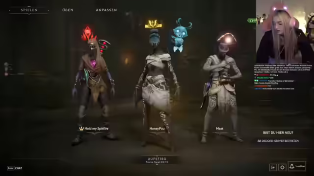 04:23:21Die Streamerin und ihre Mitspieler unterhalten sich über verschiedene Cosplay-Ideen, darunter Charaktere wie Ketsuyandere, Misa von Death Note und Viper von Valorant. Sie äußern sich zu den Herausforderungen und Vorlieben bei der Auswahl von Cosplays, wobei Kontaktlinsen als ungeeignet empfunden werden. Im Spielgeschehen konzentrieren sie sich auf die Strategie, wie sie am besten ein komplettes Set an Ausrüstung zusammenbekommen. Sie diskutieren das Looten von Kisten, die Kommunikation über gefundene Gegenstände und die Bedeutung von Teamwork, um im 3-gegen-3 PvP-Format erfolgreich zu sein. Die Spieler versuchen, sich gegenseitig zu unterstützen, indem sie nach bestimmten Gegenständen fragen und sich über die besten Vorgehensweisen austauschen, um die verschiedenen Ebenen des Turms zu meistern und im Battle Royal zu überleben.