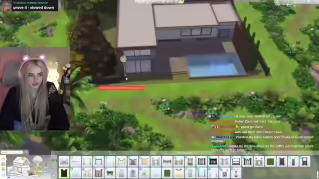 08:28:56Die Streamerin konzentriert sich auf die Gestaltung des Außenbereichs, einschließlich eines Pools und einer Garten-Area. Sie diskutiert mit dem Chat über die Größe und Platzierung des Pools sowie über die Notwendigkeit eines Balkons oder einer Terrasse. Die Idee eines modernen, asiatisch angehauchten Hauses mit vielen Fenstern wird verfolgt. Sie experimentiert mit verschiedenen Zaun- und Tor-Designs, um dem Anwesen einen luxuriösen und privaten Charakter zu verleihen. Die Streamerin versucht, eine harmonische Gesamtkomposition zu schaffen, die sowohl funktional als auch ästhetisch ansprechend ist. Trotz des Zeitdrucks und der Herausforderungen bleibt sie motiviert und versucht, das Beste aus dem Projekt herauszuholen. Sie ist offen für Vorschläge aus dem Chat und passt das Design entsprechend an.