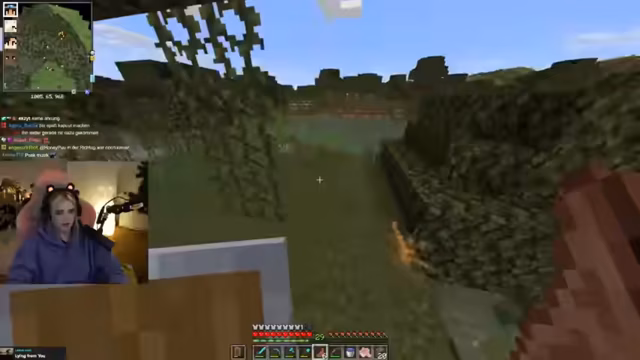 01:15:20Die Spieler bauen Boote und diskutieren die Verfügbarkeit von Öfen und Rüstungen. Während der Erkundung einer Wasserhöhle klagen sie über Sauerstoffmangel und diskutieren Lösungen wie den Bau von Luftlöchern. Der Chat warnt vor Trimax, der Rose angreifen soll, was zu Diskussionen über Sicherheit führt. Sie finden Diamanten, kämpfen mit Lava und Wassergefahren, und planen den weiteren Verlauf der Expedition.