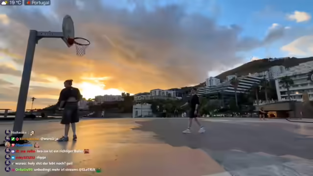 02:55:59Die Streamerin erkundet einen Park auf Madeira und beschreibt die entspannte Atmosphäre, die Grünflächen und die einheimischen Familien, die dort ihre Freizeit verbringen. Sie betont, dass die Welt dort noch in Ordnung sei und die Menschen die Seele baumeln lassen können. Es wird erwähnt, dass es in Funchal viele solcher Parks gibt. Die Streamerin erinnert sich daran, wie sie früher unerkannt in Parks saß und die Menschen beobachtete. Es wird über Tennisspielen gesprochen und die Streamerin erzählt, dass sie früher Tennis gespielt hat. Sie empfiehlt einen Besuch auf Madeira im Dezember wegen des Weihnachtsmarktes. Es wird über Streunerhunde gesprochen und die Bedenken geäußert, wie das mit ihrem eigenen Hund funktionieren würde. Die Streamerin kündigt an, dass sie gleich beim Sport mitmachen wird, obwohl sie befürchtet, schnell zu erschöpfen. Sie genießt die gute Luft auf Madeira und beschreibt, wie sie durch die Meeresnähe und die bergige Landschaft entsteht. Die Streamerin filmt eine Aerobic-Gruppe und entschuldigt sich dafür, dass sie den Boden filmt, weil sie die Leute nicht filmen wollte. Sie nimmt an einer Sportübung mit einem Ball teil und stellt fest, dass sie sehr anstrengend ist. Anschließend macht sie ein Bild mit der Sportgruppe und bedankt sich für die Freundlichkeit der Leute. Die Streamerin und ihr Begleiter spielen Basketball und unterhalten sich mit anderen Spielern. Sie lobt die Freundlichkeit der Portugiesen und die entspannte Atmosphäre auf Madeira. Am Ende des Streams bedankt sich die Streamerin bei allen Zuschauern und kündigt an, dass sie bald wieder live sein wird.