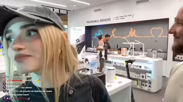 02:03:47Es wird überlegt, ob eine elektrische oder manuelle Ballpumpe gekauft werden soll. Jemand hat Zaps verschenkt, und es wird sich für die Subs bedankt. Ein Katzenklo wird entdeckt, das wie eine Raumkapsel aussieht und 500 Euro kostet. Es gibt sogar Katzenklos mit Kameras und Nachtsichtgeräten. Die Streamerinnen sind erstaunt über die technischen Möglichkeiten und den Preis. Es wird überlegt, was als nächstes gekauft werden soll. Die Streamerin hat Lust auf Basketball, obwohl sie längere Nägel hat. Es wird überlegt, ob Armdrücken gemacht werden soll. Ein Reiskocher und ein Airfryer werden entdeckt. Ein automatischer Futternapf für Katzen mit Kamera wird ebenfalls gefunden. Es wird überlegt, ob ein Crepe mit Nutella bestellt werden soll, obwohl der Fitnesstrainer das nicht gerne hören würde.