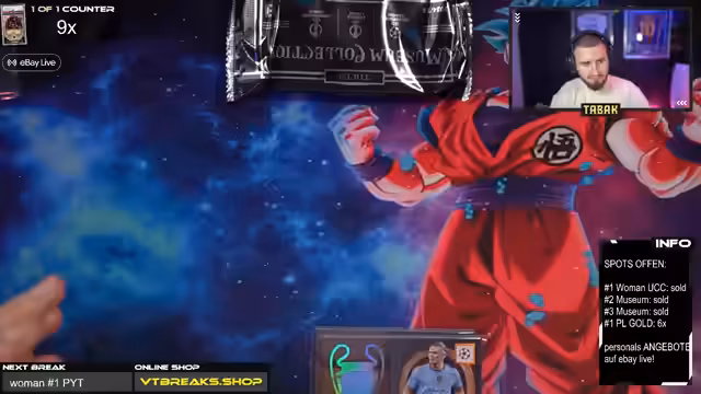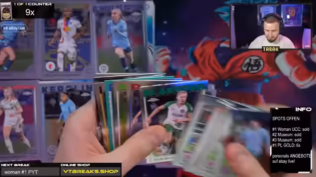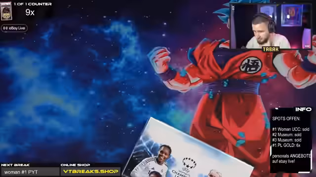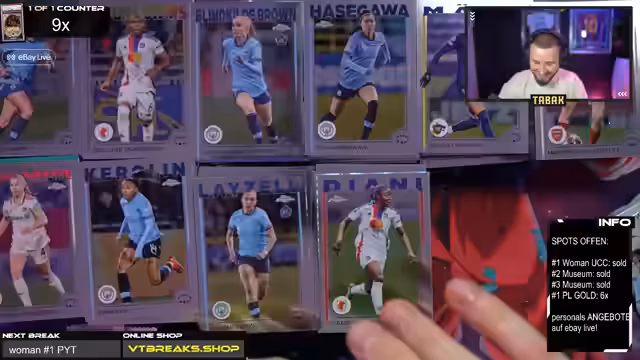 00:05:15Ein zentraler Fokus des Streams ist das Angebot auf eBay Live. Dort werden Personal Cases von Topps Pixar, Star Wars, Darts, Dakar Barcelona und Premier League Gold zum besten Preis beworben. Die Community wird direkt angesprochen, um auf die Spots zu bieten. Es wird der Fahrplan für die Breaks vorgestellt, inklusive Woman UCC, Premier League Gold und Museum. Der Streamer betont, dass die Reihenfolge der Breaks von der Community entschieden wird und dass alle Breaks bei ausreichender Nachfrage stattfinden werden. Auch spezielle Spots wie Messi-Hunts werden angeboten.