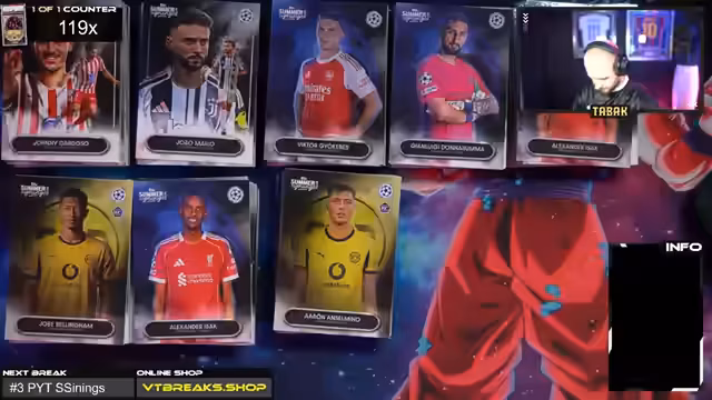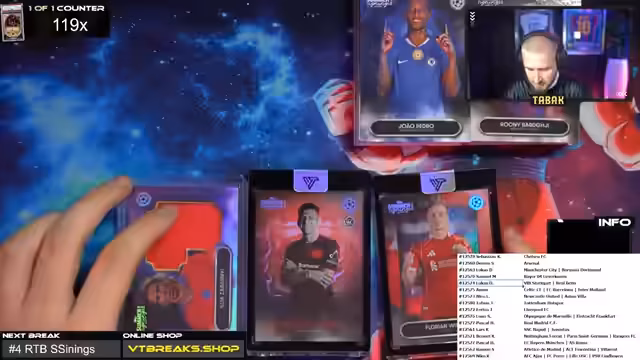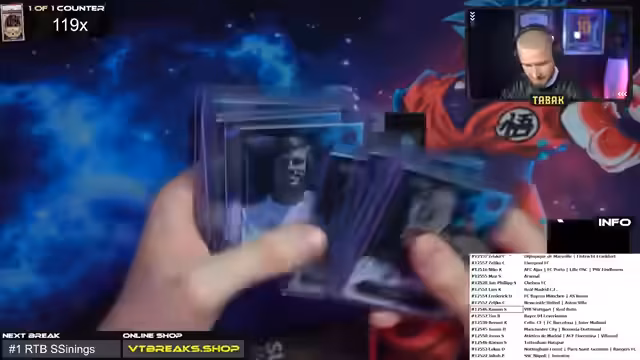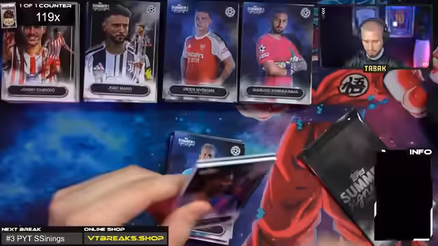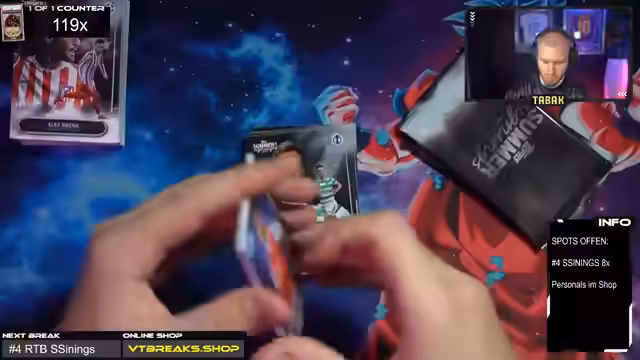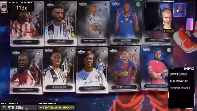 02:55:10Der Streamer bereitet den vierten Break (Hashtag 4 Summer Signings) vor, für den noch acht Spots verfügbar sind. Er erwähnt, dass insgesamt 16 Teilnehmer dabei sein werden und die Spots wie zuvor ausgelost werden. Spensi hat bereits alles vorbereitet, wofür der Streamer dankbar ist. Yoki, ein langjähriger Supporter, wird begrüßt. Der Streamer macht zehn Boxen bereit und schätzt den Preis pro Box in Deutschland auf etwa 160 Euro. Er betont, dass der vorherige Break sehr erfolgreich war und dass noch keine Estevao-Rookie-Autogrammkarte oder One-of-One gezogen wurde, was nach 30 Boxen überfällig sei. Direkt im ersten Pack des neuen Breaks wird eine dicke Patchkarte gezogen. Lamin zeigt im Barca-Spiel eine starke Leistung, was den Streamer begeistert. Es wird über den Wert einer Lennart Karl One-of-One Tops Now Karte diskutiert, die auf 2.000 bis 4.000 Euro geschätzt wird. Ein Zuschauer namens Michael besitzt tatsächlich eine solche Karte, was den Streamer sehr beeindruckt. Er bittet Michael, die Karte auf Instagram zu teilen, um sie der Community zu zeigen. Der Break benötigt noch weitere Supporter, um voll zu werden.