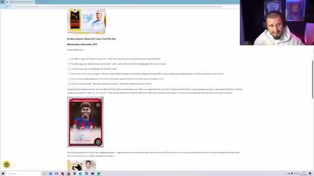 00:20:39Die Einführung von Rookie-Autos in Dynasty ist eine weitere Überraschung, da es im letzten Jahr keine gab. Spieler wie Envaniri, Endrick, Quenda und Luis Gatti sind als Rookie-Autos enthalten. Eine besondere Diskussion entbrennt um Lamine Yamal, der leider nur 'Marks of Excellence' Karten in diesem Jahr erhält und nicht als reguläre Dynasty-Karte. Es wird spekuliert, ob dies an Autogramm-Engpässen liegt oder ob die 'Marks of Excellence' Karten als Bonus in den Dynasty-Boxen enthalten sein werden, anstatt eine Dynasty-Karte zu ersetzen. Die Tatsache, dass es 380 zusätzliche Lamine Yamal 'Marks of Excellence' Karten auf dem Markt geben wird, die zu 99, 50, 25, 10, 5 und 1/1 nummeriert sind, führt zu Diskussionen über die Auswirkungen auf den Markt und die Häufigkeit, mit der sie in Cases gefunden werden können (durchschnittlich jede vierte Case).