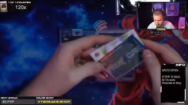 03:27:16Die wichtigsten Hits des Breaks werden zusammengefasst: Fabio Silber zu 5, Süle Auto zu 5, Joe Bellingham und Pascal Groß zu 10. Es wird erwähnt, dass noch keine Petric Auto Karte gezogen wurde. Max hat sich Isaac und Andreas Möller gesichert, wodurch nur noch sechs Spots im BVB-Break verbleiben. Es werden zwei Boxen Bayern und zwei Boxen Barca in den Shop gestellt. Justin hat sich drei Einzelpacks gesichert, die stark reduziert wurden. Der Streamer bietet Justin ein 25 Euro Pack als Geschenk an. Ein Kill Raven zu 99 Peril, Thor, Iron Man und Invisible Woman zu 150 als Refractor werden aus den Marvel-Päckchen gezogen. Nur noch drei Boxen von Marvel sind übrig.
