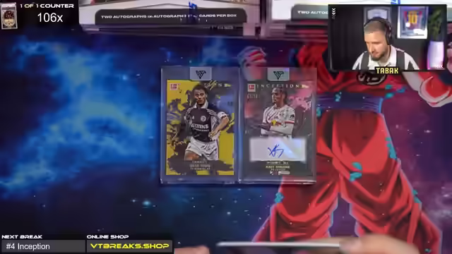 01:24:35Es wurde ein Deal mit der Community angekündigt: Wenn noch drei Spots bei Premier League weggehen, kommt direkt der nächste Inception Break online. Es wurde erwähnt, dass einige Leute Personalboxen gekauft haben (WWE und Inception) und die Möglichkeit besteht, diese live zu öffnen. Der Holstein-Kiel-Spot wurde um 20 Euro reduziert, um den nächsten Break zu starten. Es wurde spekuliert, ob MLB-Karten in Disney-Boxen Case-Hits sind und ob es sie auch als Base-Karten gibt. Es wurde die Partnerschaft von Topps mit dem Ballon d'Or hervorgehoben und die Teilnahme an der Gala als surreales und besonderes Erlebnis beschrieben. Es wurde sich bedankt und erwähnt, dass bei Wegfall von drei Premier League Spots der nächste Break online gestellt wird. Ein Kieler hat einen Spot gekauft. Es wird die fortlaufende Inception-Session und mögliche WWE Finest Breaks erwähnt.