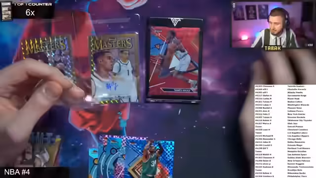 02:53:14Es werden weitere Karten gezogen, darunter Russell, Carl Anthony, Brendan (San Francisco), Jalen Clark, Kyrie Earring und Cloney. Der Streamer zieht eine Wembi-Karte für Amir und bezeichnet ihn als Macher. Er fragt Amir, ob er die Karte nach Berlin mitnehmen soll, falls Amir dort ist. Es werden weitere Karten wie Andre Jackson und Aaron Gordon gezogen. Der Streamer fragt Spencer, ob es noch weitere Sets geben wird, in denen Wemby Rookie ist, und erwähnt NBA Midnight, das bald kommt. Er fragt bei Tops nach Midnight an und plant, daran teilzunehmen. Der Streamer zieht eine Victor Wimbanyama Karte und macht ein Bild davon. Es werden weitere Karten wie Ben Simmons, Leonard Miller, Rudy Gobert und Russell gezogen. Der Streamer zieht eine Karte für die Lakers und fragt den Chat, wo Chris Murray spielt. Er zieht Karten von Richard Jefferson und Trae Young. Der Streamer kommentiert, dass Richard Jefferson jetzt bei den Brooklyn Nets sein müsste und kündigt an, die Checkliste zu überprüfen. Es werden noch eine Box geöffnet und Karten von Rip Hamilton, Scotty, Jalen Brunson, Nick Smith Jr., Jeremy Sochan und Larry Johnson gezogen. Der Streamer bedankt sich beim Chat für die Teilnahme und kündigt an, dass er in Zukunft öfter Basketball-Breaks machen wird. Er erwähnt, dass er sich mit NFL nicht auskennt, aber Basketball sexy findet.