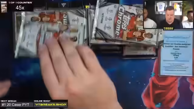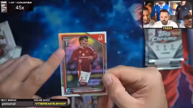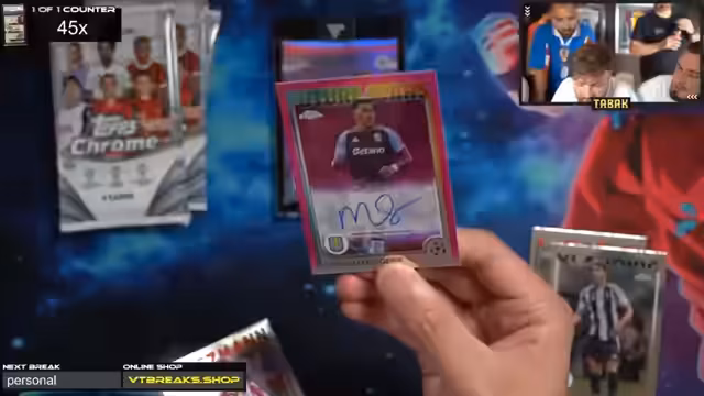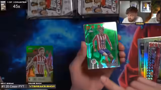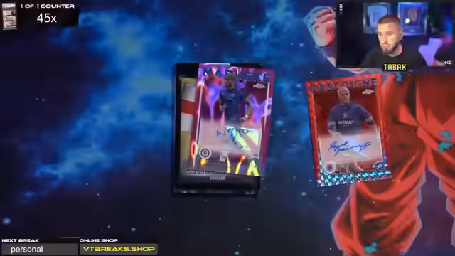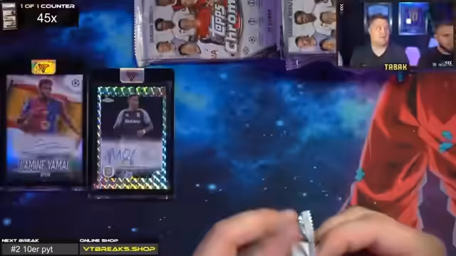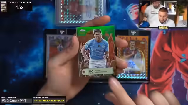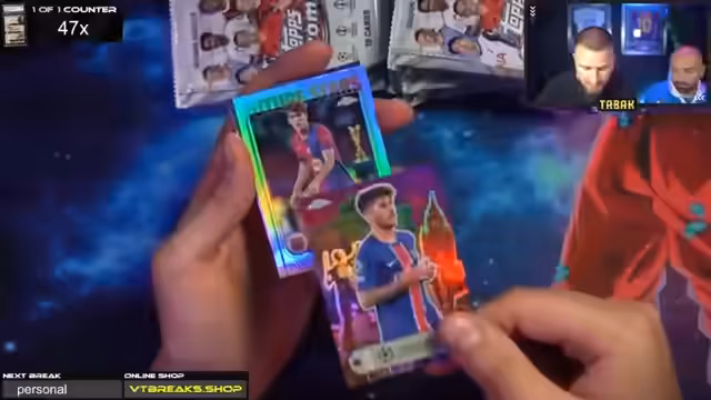 01:00:08Tone wünscht den Zuschauern viel Glück und einen schönen Stream. Es gibt keine 30-Euro-Aufpreise, da die Hobbybox und Breakout Light ohne Aufpreis erhältlich sind. Der Streamer ist gespannt auf den Crash-Out. Es wird eine Fußball-App erwähnt, bei der man Karten ziehen und Punkte sammeln kann, um weitere Karten zu erhalten. Es gab bereits einen Messi Superfractor, was als krass bezeichnet wird.