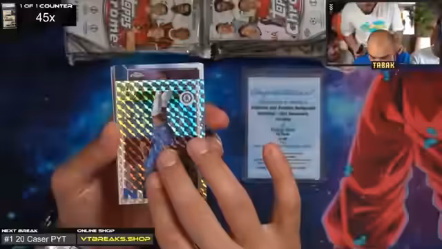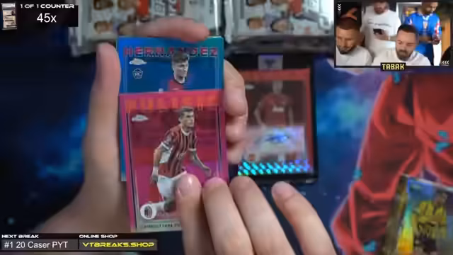 00:55:31Der Countdown läuft und der Boxbreak beginnt. Die ersten Karten werden vorgestellt, darunter eine zweimalige Leao Refractor und eine Mayulu Rookie Geometric Design. Die Qualität der Karten wird gelobt und der Streamer zeigt sich begeistert vom Design und der Optik der Karten. Es wird betont, dass sie Zeit haben und nicht hetzen müssen, während sie mit dem Öffnen der Breaker Delight Boxen fortfahren, die viele Hits enthalten.