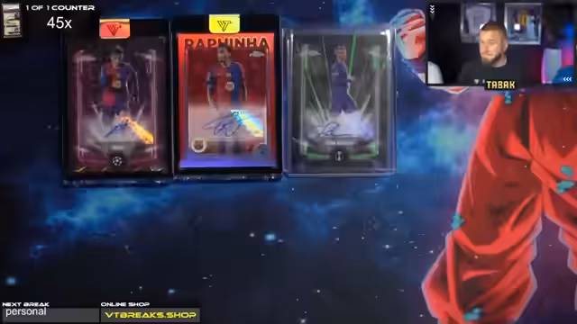 05:45:35Das Opening der Cases geht weiter, mit Fokus auf Superfractor-Karten und besonderen Momenten wie dem Verdacht auf eine Neymar-Karte, die sich später als Raphael Marquez herausstellt. Der Streamer zeigt große Aufregung über mögliche zukünftige Hits wie einen Superfractor. Auch das Thema wird angesprochen, dass sie nach wie vor nach bestimmten Karten wie Lamin, Messi und Ronaldinho suchen. Der Streamer kündigt an, dass sie später noch Personal Cases öffnen werden.