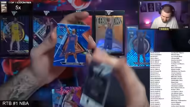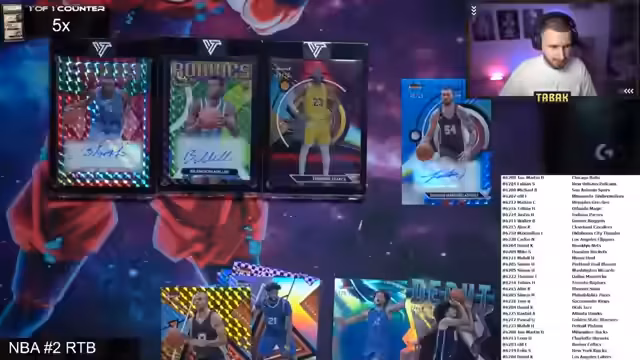 02:20:12Der Stream startet mit der Verteilung der Teams an die Teilnehmer. Sinan B. erhält die Los Angeles Clippers, Dominic die Phoenix Suns, Elif die Sacramento Kings, Alex L. die Chicago Bulls und A. Feesit die Houston Rockets. Der Streamer bereitet die erste Box, einen Breaker Delight, vor und betont, dass es sich um eine "gejuicete Box" handelt, die ausschließlich Hits und keine Basiskarten enthält.