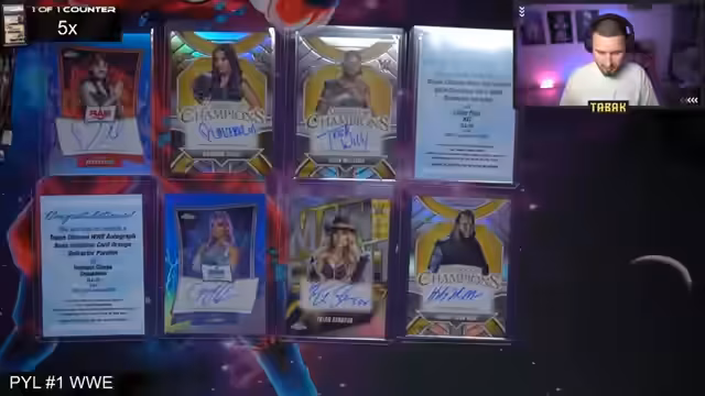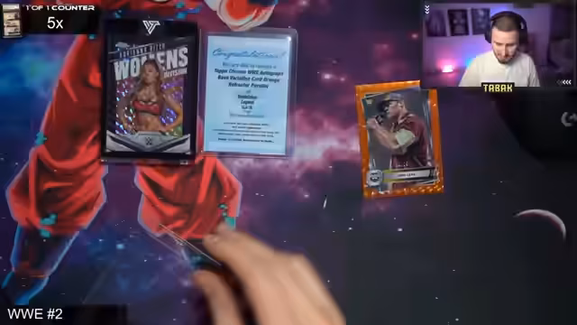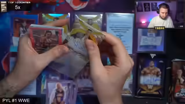 00:21:41Der Stream beginnt mit der Eröffnung der Personalbox von Jannis. Bereits in den ersten Packs werden starke Karten gezogen, darunter eine Katana On-Card Autogrammkarte als Erster Treffer. Es folgen weitere bekannte WWE-Namen wie Elton, Cowboy Bob Orton und der Million Dollar Man Ted DiBiase. Die Begeisterung im Chat ist groß, besonders als eine Hall of Fame Autograph Redemption mit einer potentiell extrem wertvollen Karte von Hulk Hogan oder der Undertaker gezogen wird. Die Spannung steigt, da die Identität der Autogrammkarte noch unbekannt ist.