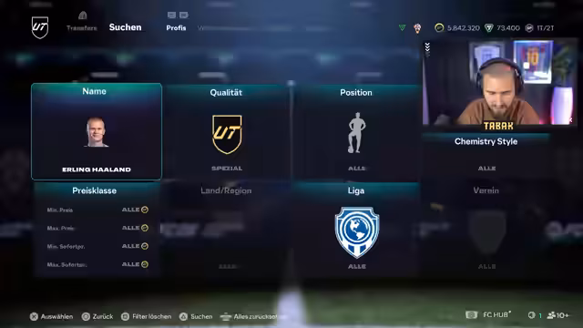 00:11:25Der Stream beginnt mit der Begrüßung des Chats und der Ankündigung, dass beim Account bei EAFC FC 26 Verrücktes passiert ist. Streamer berichtet über seine bisherigen Aktivitäten: Er hat Vinicius Junior gezogen, einen Foot-Draft gewonnen und sein Evo-Main-Team fertiggestellt. Es wird von einem Investitionsbudget von 3000 Euro gesprochen, von denen bereits 2400 Euro investiert wurden. Er deutet an, dass der Markt für High-Rated-Spieler (88-90er) innerhalb von vier bis sechs Wochen um ein Vielfaches steigen wird, und empfiehlt, in diese Karten zu investieren.