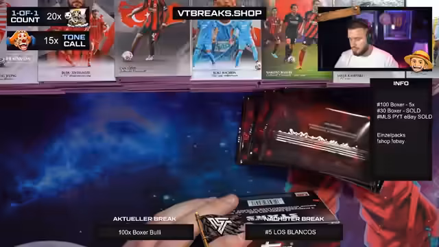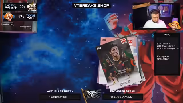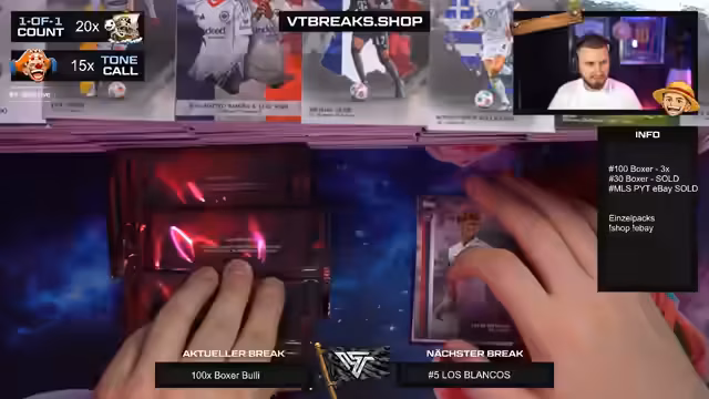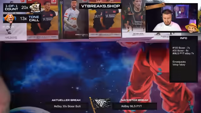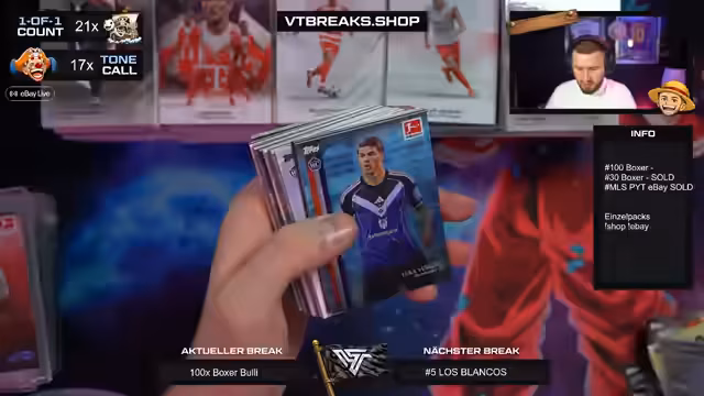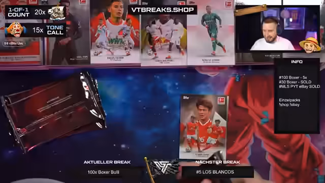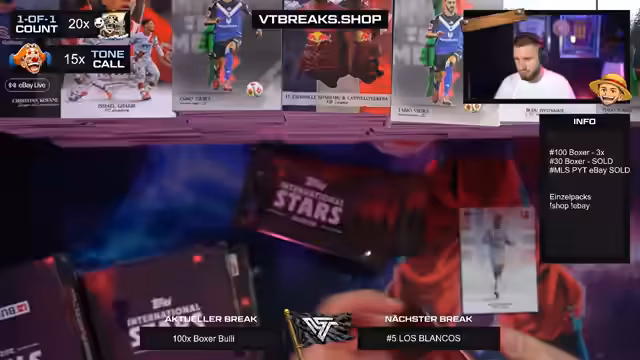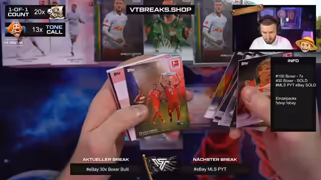 Es wurde ein Break mit 100 Boxen der Bundesliga International Stars Serie durchgeführt. Der Schwerpunkt lag auf der Suche nach begehrten Autogrammen und seltene One-of-One-Karten. Besondere Highlights konnten im Stream präsentiert und die enorme Menge an Karten verarbeitet werden.