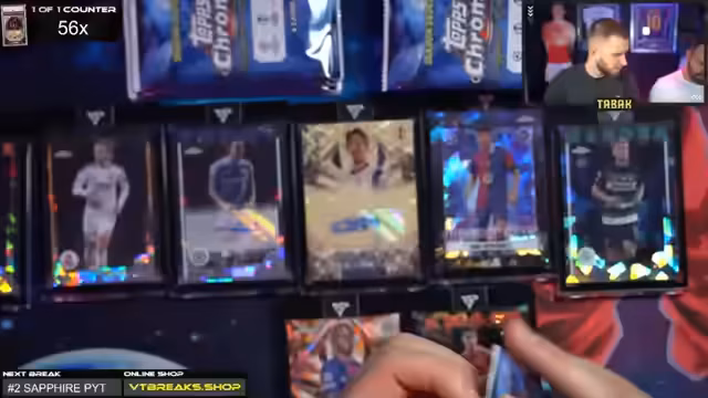 04:17:00Die Erfolgsserie des Sapphire-Brakes setzt sich fort, als eine weitere Kostbarkeit gezogen wird: eine Motörhead-Karte zu 50, die den Moderator erneut in Ekstase versetzt. Es werden weiterhin hochwertige Karten gezogen, darunter Karten mit alternativen Designs wie Image Variations, die für ihren Sammlerwert geschätzt werden. Der Stream ist von einer unerwarteten Fülle an Banger- und High-End-Karten geprägt, wobei immer wieder seltene Nummern und begehrte Spieler auftauchen und das Publikum begeistern.