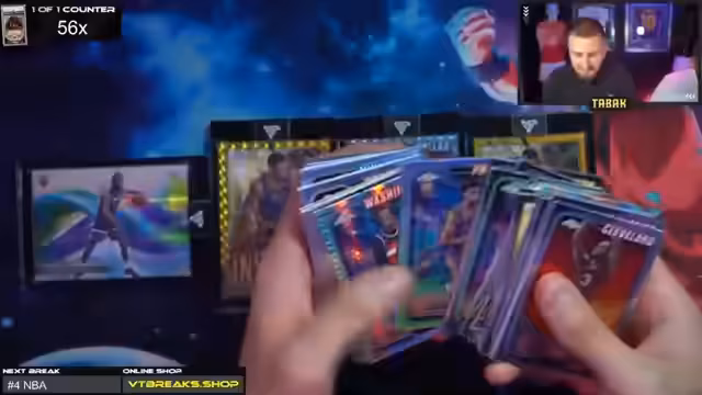 00:52:30Der Stream setzt die Sapphire Breaks fort, während die verbleibenden Spots der anderen Breaks, wie Marvel Hashtag 2 und NBA, verkauft werden. Der Streamer öffnet die vierte Box von Sapphire und zeigt Karten wie Wunder Kids, Sapphire Selection und weitere Rookies. Es wird über die Verfügbarkeit zukünftiger Marvel-Breaks gesprochen. Der Fokus liegt weiterhin auf dem Öffnen der restlichen Sapphire Cases und der Präsentation der Karten.