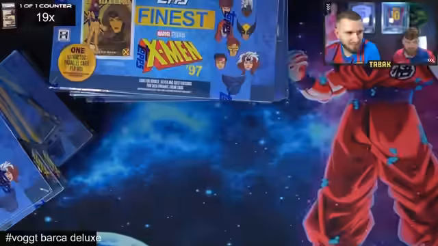 02:26:41Die Streamer öffnen mehrere Marvel-Karten-Boxen und präsentieren die Inhalte im Chat. Neben normalen Karten gibt es seltene Varianten wie Refractor-Karten, nummerierte Karten und Autogrammkarten. Besonders Highlights sind seltene Charaktere wie Wolverine, Beast und Cyclops sowie eine dicke, dreidimensional Karte, die als Case-Hit gilt.