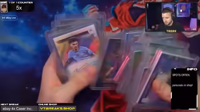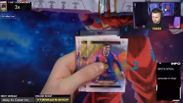 00:41:55Als Nächstes ist Felix an der Reihe, der ein ganzes Museum Case gewonnen hat, anstatt nur einer Box. Im Break werden Karten von Cristiano Ronaldo und anderen Spielern gezogen. Der Streamer erwähnt, dass die Messi-Karte im Museum Gold-Frame mit Patch extrem gut aussieht. Der Höhepunkt des Streams ist der große 4-Case-Inception-Break. Hier gibt es nur noch einen Spot, und es ist nicht sicher, welche hochwertigen Karten wie Booklets oder One of Ones noch im Fall sein könnten. Die Erwartungen sind daher sehr hoch.