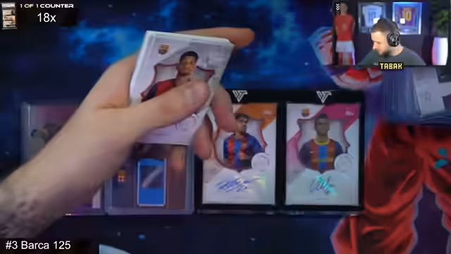 01:13:14Es werden Patch-Karten und Autogramme wie Busquets (xx/50) und Deko (10/10) erwähnt. Die Deluxe Boxen werden als potenziell sehr interessant eingeschätzt, entweder ein Top- oder Flop-Erlebnis. Es wird überlegt, sich einen Break auf YouTube anzusehen, um zu sehen, wie die Deluxe Boxen aussehen. Eine Ronaldinho One of One Karte wurde bereits in einer geöffneten Box entdeckt. In jeder Deluxe-Box soll eine Redemption enthalten sein, möglicherweise ein Booklet oder ein Autogramm plus Stadionsitz aus dem Camp Nou. Ein uncut stadium seat, also ein ganzer Sitz, könnte in der Deluxe-Box enthalten sein. Es wird ein Deluxe HitDraft veranstaltet, bei dem ein Mitglied der Community einen Steinbesitzer aus dem Camp Nou erhält. Der Streamer plant, sein Zimmer in ein kleines Museum zu verwandeln und Karten aufzuhängen, möglicherweise mit einer Vitrine oder einem Schaukasten für Ausstellungsstücke.