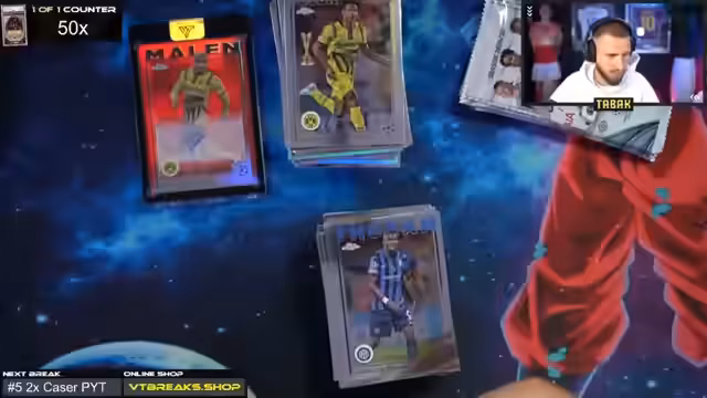 00:56:49Während des Streams erhält Amir eine Messi Superfractor One-of-One Karte aus dem Vorjahr. Diese seltene Karte löst große Begeisterung im Chat und im Stream aus. Streamer Tabak rät Amir, die Karte auf jeden Fall zu behalten, da es sich um eine wertvolle und einmalige Gelegenheit handelt, insbesondere für jemanden, der neu im Hobby ist. Es wird der hohe Value der Karte betont und empfohlen, sich vor einem möglichen Verkauf beraten zu lassen.
