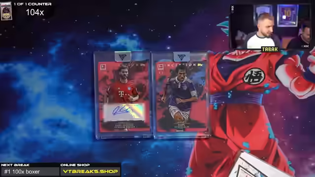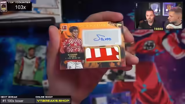 02:07:03Eine Duan Karte wird gezogen, und der Streamer scherzt über die Schwierigkeit, ihn an seiner Frisur zu erkennen. Eine Klose-Karte wird als besonders gelungen hervorgehoben. Ohm ist im Chat anwesend, und es wird über eine langjährige Freundschaft gesprochen, die durch das Hobby entstanden ist. Max wird gegrüßt, und seine Expertise bezüglich Blackboxen wird gelobt. Es wird diskutiert, ob eine Karte rot oder orange ist, und eine Asnu Rookie-Karte wird gezogen. Der Streamer spielt Musik ein und es wird Zeit für den nächsten 1-on-1. Jonas Wind wird erwähnt, und es wird spekuliert, was Viktor Boniface zockt. Es werden Karten von Onura und Freddy Bobic gezogen, wobei letzterer ein gutes Spieler gewesen sein soll. Eine Jamal-Karte wird gezeigt, und es wird über die Verpackung der Cases gesprochen. Ein BVB-Mädchen-Autogramm wird gezogen, und Max lobt das Set als 10 von 10. Es wird über Toni Fernandes von Barca gesprochen, und ein schöner Patch wird gezogen. Die Patches in diesem Set werden als unglaublich krass bezeichnet. TFF hat Mamouche die Karte Bonofon gezogen und Autor die gleiche Karte. Es wird überlegt, was noch für den Maxi gezogen werden soll, und eine Vermeern-Karte für Leipzig wird gezogen. Eine Victor Boniface Karte wird gezogen, und es wird festgestellt, dass noch nicht Halbzeit ist.