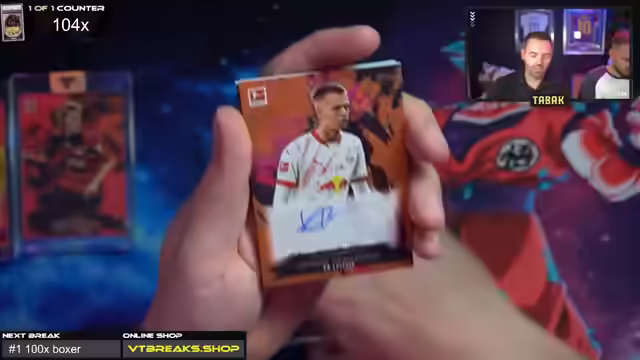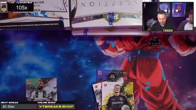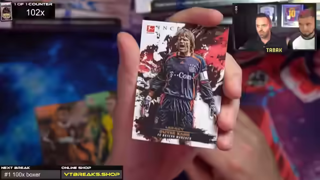 02:19:00Es wird ein Booklet und eine One-of-One Karte erwartet. Der Streamer fragt nach Stuttgarter Karten und erwähnt, dass bereits einiges gezogen wurde. Kevin Couragny Auto zu 5 wird gezogen, sowie Oliver Neville und Freddy Bobic. Köln zieht weiterhin gut. Ilja soll jetzt etwas zaubern und es wird über frühere Funde gesprochen. Eine Labeling zu 49 Frimpong Karte wird gezogen, sowie Rookie Hertha Alora. Die Patches werden als gut bezeichnet. Es wird über ein 4-2 Spiel und Oliver Berkey gesprochen. Breaks sind online und es wird über eine Überbestellung diskutiert. Nathaniel Brown und Philipp Lahm Karten werden gezogen. Musiala und Jamie Baino Gittens Autogramme werden gezogen. Es wird gefragt, wie man am einfachsten eine Karte bei PSA bewerten lässt. Felix Maga und Franz Beckenbauer Karten werden gezogen. Frank Ribery Autograph wird gezogen und es wird diskutiert, ob er auf die Wiesen geht. Drake war auf dem Wiesen und French Montana heiratet die Dubai Prinzessin. Karl-Heinz Rummenigge und Xavi Simons Karten werden gezogen. Felix Magath für den HSV wird gezogen und es wird über einen Elfmeter für Frankfurt diskutiert. Es werden Hüllen für ein Set empfohlen und Sepp Meier Autograph wird gezogen. Es wird über eine Messi zu 5 Karte diskutiert und Lovro Maier zu 10 für Wolfsburg wird gezogen. Es wird Zeit für den One-of-One-Chat und es werden Bochumer Liegen-Dinger gezogen. Lucio war eine Bank und es wird über ein defensives Case gesprochen. David Raum und Openda Autograph werden gezogen. Es fehlen noch Haaland und Bellingham. Es wird über Pizza und Knoblauch gesprochen. Das Case wird als nicht so gut bewertet und Harry Kane wird gezogen. Es wird über Musiala Autogramme gesprochen und jedes Team sollte jetzt eine Karte vermittelt haben. Ilja ist jetzt dran und nimmt das Case ganz unten.