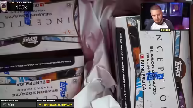 iamtabaktv veranstaltet einen Inception Bundesliga Box Break mit MrPrimeCollector. Im Fokus stehen Diskussionen über Work-Life-Balance, Chase-Karten und der Start des Breaks. Es gab Gespräche über Kartenqualität, Vorstellung von Mr. Prime Collector, Kartendesign, Seltenheit, Dual Autograph Book Cards, Gewinnspiele und Usun Torerfolge.