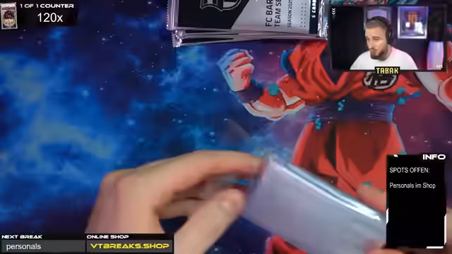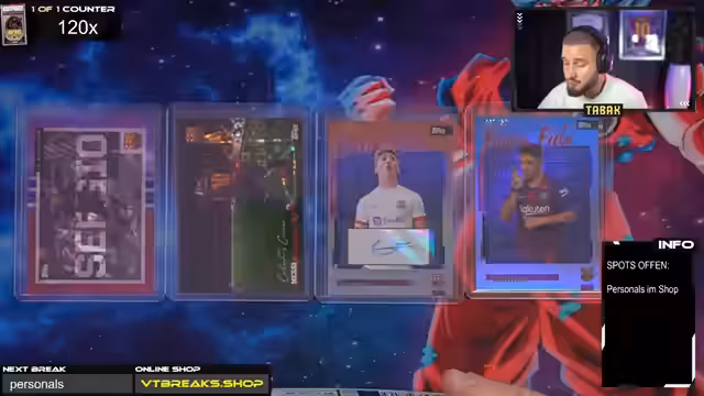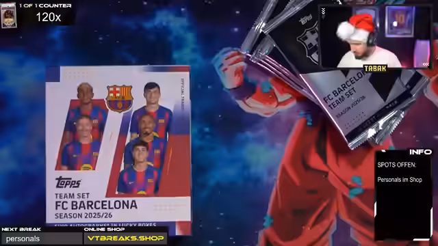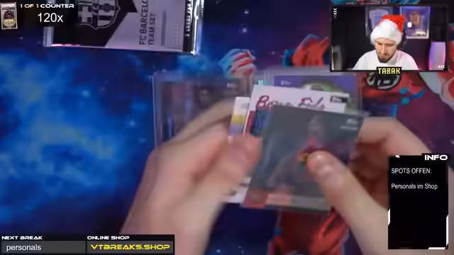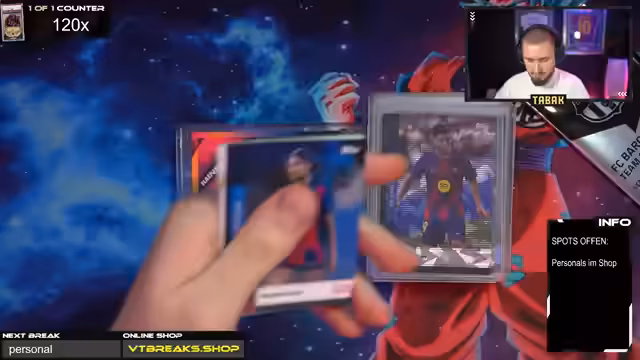 00:16:13Der Streamer gibt bekannt, dass der BVB-Release voraussichtlich morgen stattfindet und dann auch BVB-Breaks und Personals im Shop verfügbar sein werden. Die erste FC Barcelona Box wird geöffnet, bestellt von Markus, der zwei Sealed-Produkte und einen Ajax Amsterdam Spot hat. Der erste Eindruck des Barca-Team-Sets ist sehr positiv, insbesondere das Kartendesign. Es wird erwähnt, dass es keine Relics mehr gibt, dafür aber in jeder zweiten Box eine Autogrammkarte zu finden ist. Die Designs werden als deutlich besser und schicker empfunden als in den Vorjahren, was durch das Wegfallen der Relics auch zu einem günstigeren Preis geführt hat. Es wird eine Gavi Autogrammkarte zu 25 und eine beeindruckende Messi-Karte gezogen, die als eine der coolsten Messi-Karten aus einem Team-Set bezeichnet wird.
