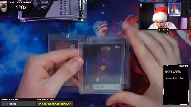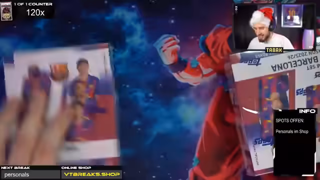01:19:02Der Streamer kündigt an, weitere Barça- und Bayern-Team-Sets online zu stellen, jeweils fünf pro Team. Die 'Schleusen' sind wieder geöffnet, was bedeutet, dass Zuschauer Spots kaufen können. Es wird erwähnt, dass Inception voraussichtlich Ende Dezember veröffentlicht wird. Erste Boxen werden geöffnet, darunter eine Bayern-Box für Julian W., in der Harry Kane und Benjamin DM gezogen werden. Es ist das erste Mal, dass Bayern-Kappen geöffnet werden, und das Design wird als 'Weihnachts-Design' beschrieben. Es werden auch Xabi Alonso Corner-Karten und eine Owen Hargreaves-Karte zu 75 gezogen. Eine Autogrammkarte von Alexander Zickler wird ebenfalls gefunden.