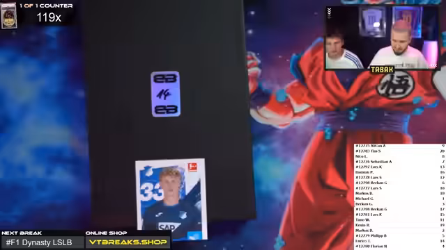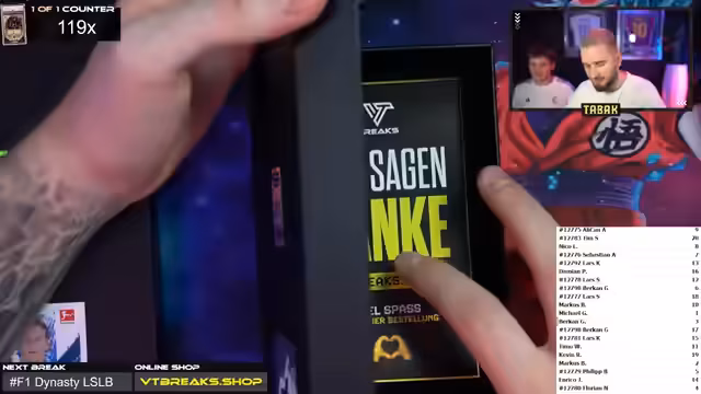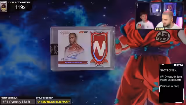 01:16:08Es wird festgestellt, dass in diesem Case keine One-of-One-Karte enthalten war, was jedoch durch das Ziehen von extrem seltenen und wertvollen Karten anderer Top-Fahrer ausgeglichen wurde. Dies wird als typisch für F1 Dynasty-Cases beschrieben, die entweder eine One-of-One oder mehrere „Case-Hits“ von Top-Spielern oder -Fahrern enthalten. Der Streamer freut sich über die Möglichkeit, solche Produkte in Deutschland öffnen zu können, was nicht selbstverständlich sei. Die Entscheidung, einen Spot im Break zu kaufen, um die Community zu unterstützen und das Füllen des Breaks zu erleichtern, wird als Teamgeist dargestellt. Die gezogene Hamilton-Karte wird als „geisteskrank“ und als Belohnung für diesen Einsatz empfunden. Es wird angemerkt, dass es fünf verschiedene Karten gab und keine Duplikate, was als positiv hervorgehoben wird. Teilnehmer, die keine Karte gewonnen haben, erhalten als Trostpflaster F1-Chrome-Hobby-Boxen. Die Hamilton-Karte wird für ein Weihnachts-Giveaway auf Instagram in Betracht gezogen. Die Vorfreude auf die Blackbox ist groß, da sie die erste ist, bei der die Verpackung selbst vom Streamer-Team entworfen wurde. Die Blackbox ist fast ausverkauft, und es wird die Geschichte von einem Supporter namens Gorni erzählt, der in vielen Breaks nach einer bestimmten Karte suchte und sie erst später in einem anderen Case gefunden wurde, was die Glückssache des Hobbys unterstreicht. Die Blackbox wird als nächstes Highlight des Streams erwartet, und es wird der Randomizer für die Boxen vorbereitet.