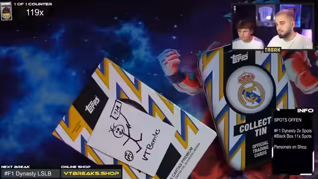 00:17:42Der F1 Dynasty Break ist ausverkauft, was im Stream mit großer Begeisterung gefeiert wird. Der Streamer äußert seine Nervosität und Vorfreude auf die Öffnung des Cases, da er selbst einen Spot besitzt. Die steigende Popularität der Formel 1 und die damit verbundenen hohen Kartenwerte werden thematisiert, insbesondere im Hinblick auf die aktuelle Saison und aufstrebende Rookies wie Antonelli. Es wird über die Seltenheit von Autogrammen und die Besonderheit von Cut-Autos, wie dem von Ayrton Senna, gesprochen. Die Möglichkeit, eine One-of-One-Karte zu ziehen, wird als sehr hoch eingeschätzt, obwohl es keine Garantie dafür gibt. Die Community wird aufgerufen, sich auf die bevorstehende Öffnung vorzubereiten, während noch einige Real Madrid Tin-Boxen als Warm-up geöffnet werden.