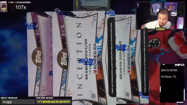 02:39:19Felix und SR haben sich überlegt. Es wird gefragt, ob jemand aufgepasst hat, ob was für Ulm oder Henneim da war. Es wird gesagt, dass es um 18 Uhr VT Breaks im Shop gibt. Es wird gefragt, was es alles bei Disney gibt. Es gibt Autogramme von Schauspielern, Sketches, Mickey Mouse, Donald Duck, Pluto. Disney ist ein absolutes Brecher-Set. Es wird gesagt, dass der Break sehr, sehr günstig ist. Es wird gefragt, wie man sich einigen soll. Es wird gesagt, dass man eine Marvel-Box holt und diese Box geschenkt bekommt. SR hat direkt Felix blockiert. Es wird gesagt, dass mit Wuschkovic der beste Verteidiger in der Bundesliga ist. Yu-Gi-Oh! wurde gezockt. Es wird gesagt, dass Fabus, Bayern-Spot hat. Es wird gesagt, dass Harland in Adas dabei ist. Es wird ein kleiner Recap gemacht. Es wird gesagt, dass SR-Shop das Booklet bekommt.