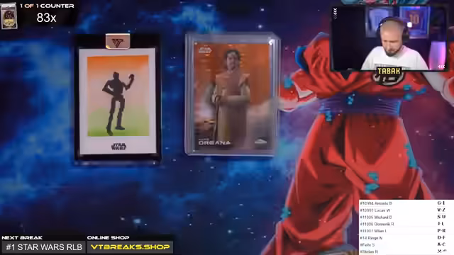 00:21:07Der Hauptfokus des Streams liegt auf dem großen Star Wars Break. Nachdem alle Spots vergeben wurden, beginnt der Öffnungsprozess der Boxen. Es werden zahlreiche Karten gezogen, darunter mehrere Autogramme und Sketch-Karten. Eine bedeutende Ziehung ist eine Darth Vader One-of-One Sketch-Karte für Teilnehmer Moritz. Sketch-Karten werden als besonders wertvoll eingestuft und gelten als Bonifikation für die Breaker. Der Streamer hebt die hohen Marktpreise für Star Wars Karten hervor, insbesondere für seltene Sketchen.