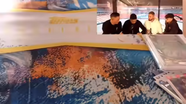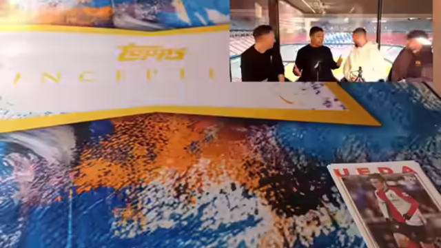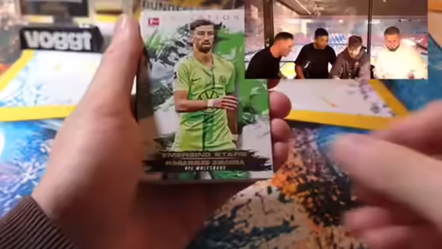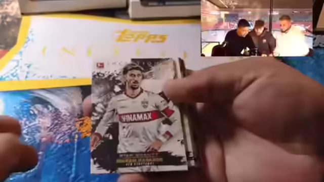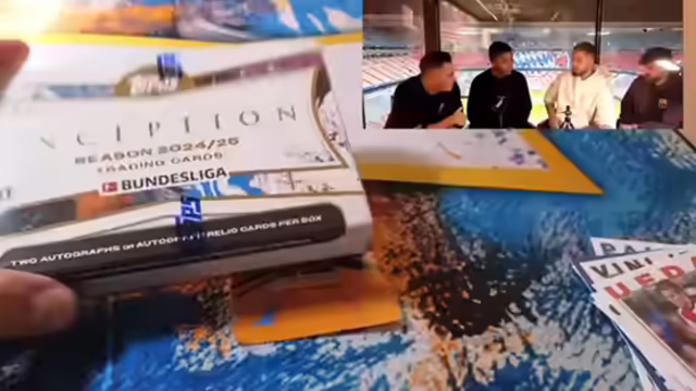 00:39:49Es wird erklärt, wie Box Breaks funktionieren, bei denen sich Leute Spots kaufen und die entsprechenden Karten nach Hause geschickt bekommen. Ein Case von Inception mit zwölf Boxen wird gezeigt. Anton fängt an, die erste Box zu öffnen. Giovanni soll am Ende die Autogramme ziehen. Es wird über das Ambiente in der Allianz Arena gesprochen. Anton zieht eine Schlotterbeck-Autogrammkarte und eine Anthony-von-Mainz-Karte. Es wird gehofft, dass eine 1 von 1 Karte und am besten noch ein Bayern-Spieler gezogen wird. Giovanni zieht eine Mehmet-Scholl-Karte und eine Alvero-Skelly-Karte. Juman berührt den Patch von Alvero Skelly und sagt, dass nun die DNA von Bremen SportGG drauf ist.
