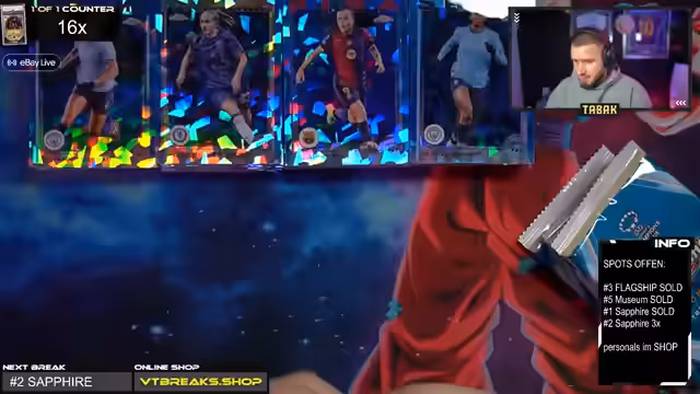 03:45:29Nach dem erfolgreichen One Piece Break wird der Woman Sapphire Break angekündigt und die letzten Spots für den heutigen Abend verkauft. Es wird erwähnt, dass zwei weitere One Piece Cases bestellt wurden, die aber teurer sein werden. Für die Zukunft plant der Streamer, an einem TCG-Turnier teilzunehmen und seine gesammelten Hits professionell einstufen zu lassen. Der Stream soll bis zur Champions League weiterlaufen.