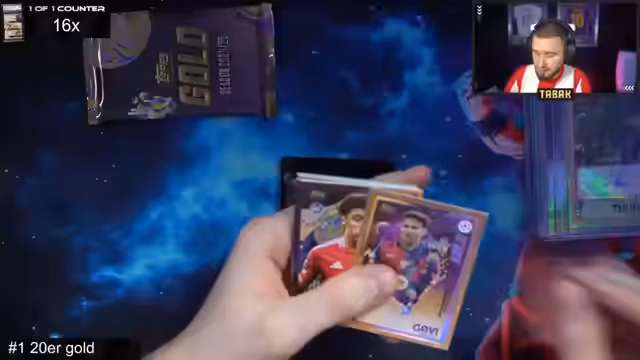 02:30:35Die Hauptaktivität ist das Öffnen von 20 Packungen der 'UCL Gold'-Serie. Dabei werden mehrere wertvolle Karten gezogen, darunter eine 'One of One' (1/1) von Chiesa und eine weitere 1/1 von Didier Hamann. Große Freude bereitet auch eine Musiala-Karte mit Autogramm. Parallel wird ein persönliches Top-Ticket für ein Fußballspiel erwähnt, bei dem der Streamer zum Stadion aufbricht.