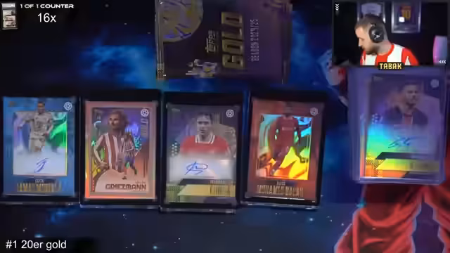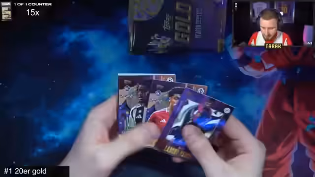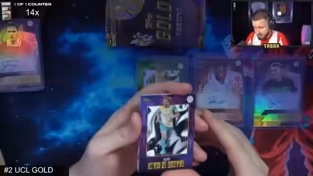 02:12:12Nach dem Filler-Break startet der große Haupt-Break mit 20 UCL Gold Boxen. Streamer betont,dass jedes Pack einen Hit enthält und die Boxen sehr begehrt sind. Die Teilnehmer werden aufgelistet und Streamer kündigt an,dass er die Karten nach Berlin nehmen könnte,um dort einen zusätzlichen Stream zu machen. Break beginnt mit der Eröffnung der ersten Box,die bereits seltene Karten wie Rüdiger und Choumeni Autographen enthält.