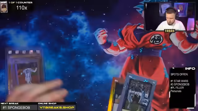 01:16:18Der Streamer kündigt den ersten großen Spongebob-Break an, bei dem elf Spots zur Verfügung stehen. Jede Bestellung erhält zusätzlich zwei Karten geschenkt. Er betont, dass es sich hierbei um einen Einkaufspreis-Break handelt, bei dem das Team keinen Gewinn macht, sondern durch Gebühren sogar draufzahlt. Der Chat reagiert begeistert auf die Ankündigung, da Spongebob- und Star Wars-Karten im Mittelpunkt stehen.